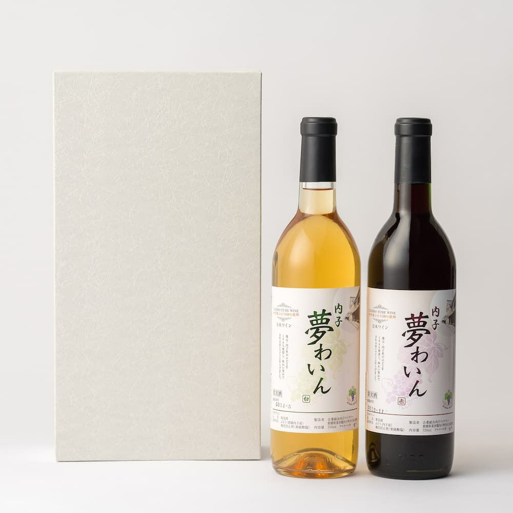 生食用でもお馴染みのブドウで造ったワインセット。その日の料理やお好みに合わせて赤と白それぞれのワインをお楽しみください。