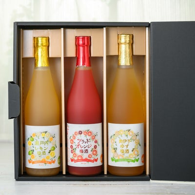 愛媛県産ブラッドオレンジを使用した『ブラッドオレンジ梅酒』、愛媛県産レモンを使用した『瀬戸内レモン梅酒』、愛媛県産ゆずを使用した『奥伊予ゆず梅酒』のアルコール度数8%のお酒です。ストレート・ロック・ソーダ割り等で飲み比べをお楽しみください。