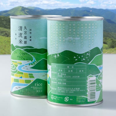 久万高原清流米の穫れたて新米(無洗米)を詰め込み、長い間、いつでも新米を楽しんでいただける缶詰です。