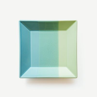 釉薬同士の重なりから生まれる色の表情が魅力的な「KASANE」シリーズの角皿。