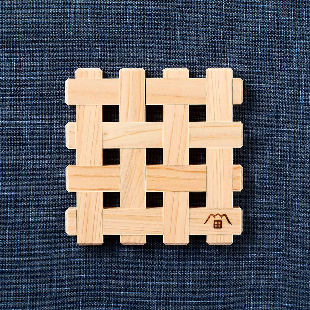 硬い木材が、編んだような模様になっています。その仕組みを説明書で学び、接着剤をつけずに、木組みをお楽しみください。