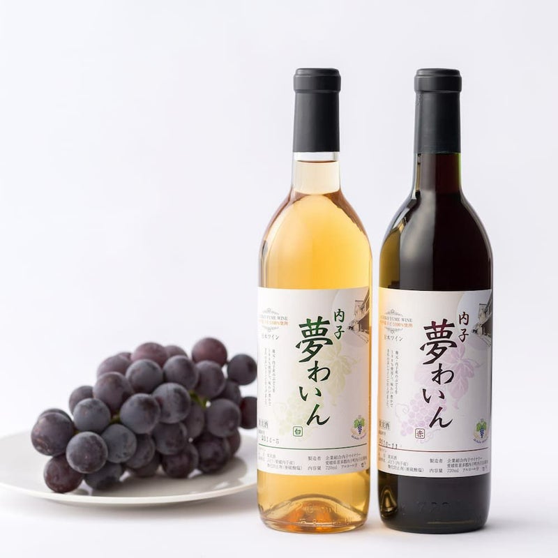 生食用でもお馴染みのブドウで造ったワインセット。その日の料理やお好みに合わせて赤と白それぞれのワインをお楽しみください。