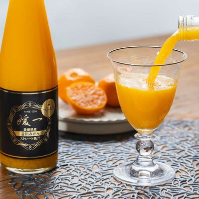 「媛一つぶ入りジュース」は、媛一みかんだけを搾ったストレートジュースにみかんのつぶを加えたストレートジュースです。